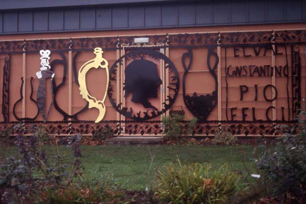 'The Roman Wall' A 12 metre long painted galvanised steel screen, with gilded and stainless steel elements. 2005
