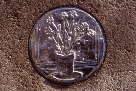 Pavement Plaques 'Pavement Plaques' One of 100 different bronze discs 150mm diameter set into the pavement in Maesteg town centre. Created by teenagers at a drop in centre. Copyright Andy Hazell 2010