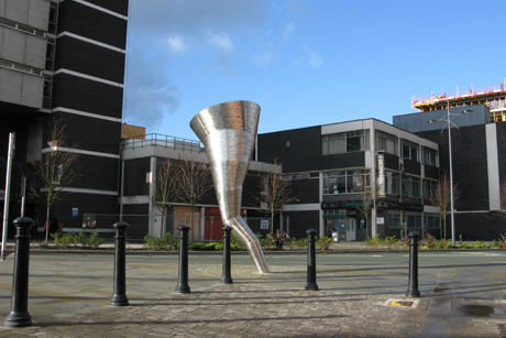 Wirlwind 'Wirlwind' A 3.6m high polished stainless steel cone, cut through with all the names of the companies who once traded in Dock Street, Newport. Copyright Andy Hazell 2010