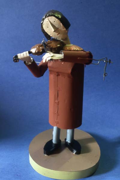 'The Violinist' A small painted Tinplate Automata of an earnest lady being cruel to a Violin. 1993
