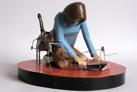 'Cat Hair' A painted soldered tinplate with simple wire crank mechanism.