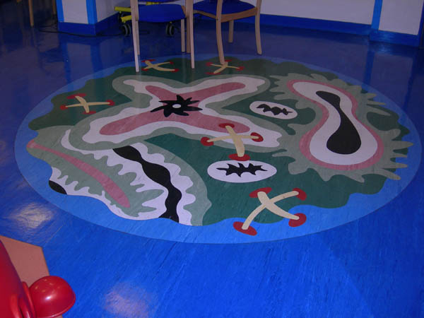 'The Radiology Dept Floor' One of four different viny floor designs. 4m diameter. Cardiff Childrens Hospital.