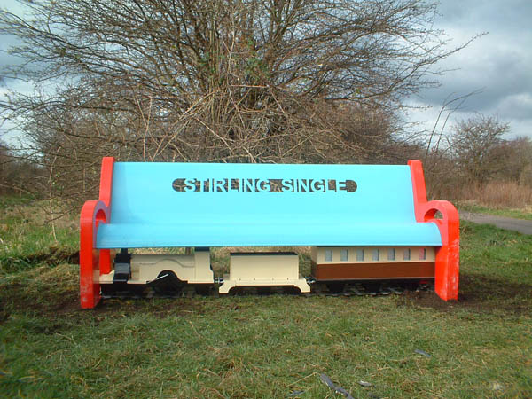 'Train Seat' on Doncaster Greenway, constructed of painted galvanised steel, 2.4m long.