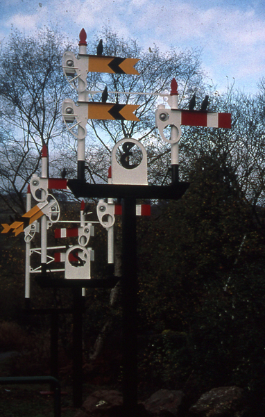 'Signals and Crows' Bedwas to Machen Cycle Route. Painted Galvanised Steel with cast aluminium crows. 8m high. 2003.
