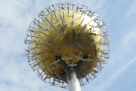 'Dandelion' A 1.5 metre gilded sphere covered with 234 aeroplane silhouettes. 4.8m high. Western-Super-Mare.