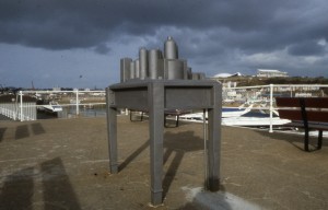 ‘Radio Waves’ A 1.4 metre high 1 tonne cast iron valve radio, situated at the mouth of the River Hull. It incorporates a search band VHF radio broadcasting quietly. 1992