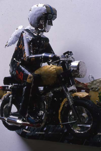 'The Bikers Soul'. A soldered tinplate 1960's British Motorbike with a winged rider. 1990.