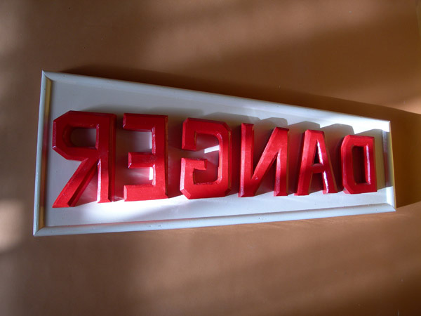 'Danger Passed (the view in your mirror)'. Painted wood, 600mm long. 2005