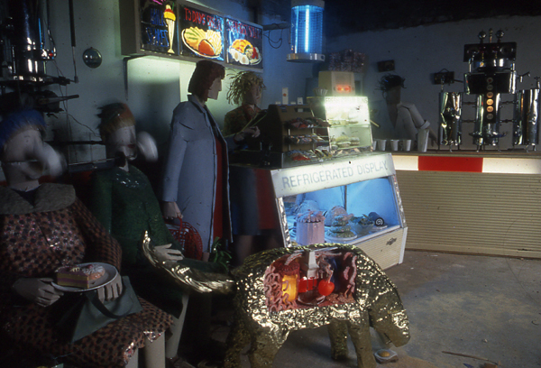 'The Cafe from the Ride of Life' 6 life size animated tinplate figures in an animated environment, driven by geared motors and pneumatics.